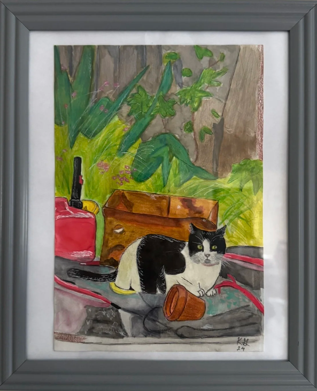 Watercolor and color pencil pet portrait hand painted by Karissa